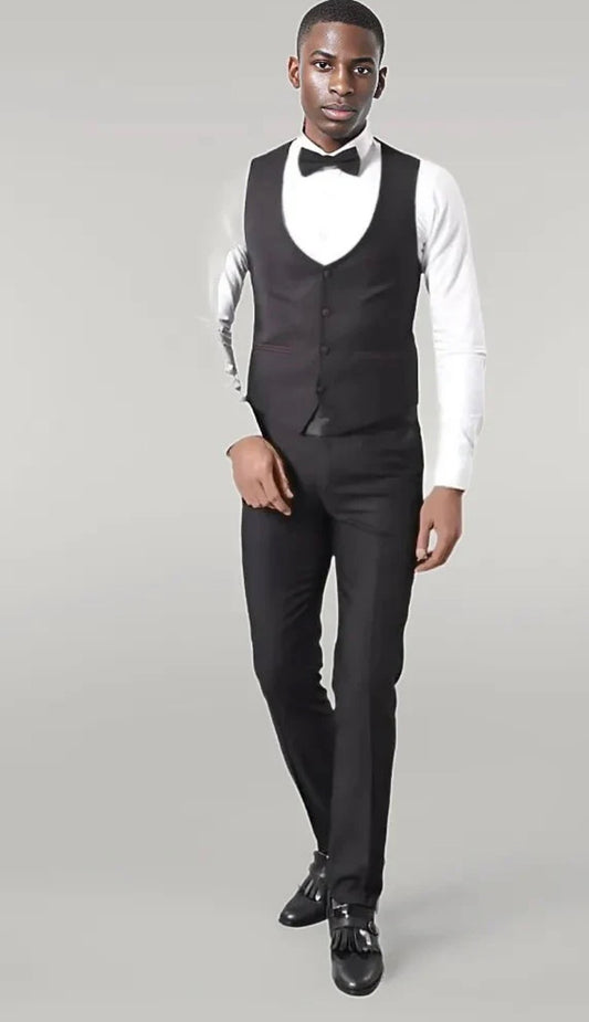 Collar and Pockets Modeled Black 3 Piece Men Tuxedo
