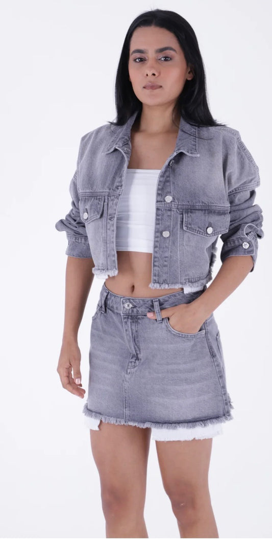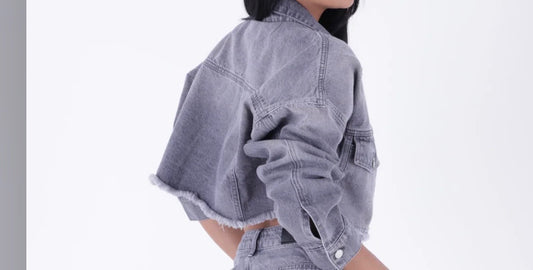 DENIM SHORT JACKET WITH REVEALED POCKETS
