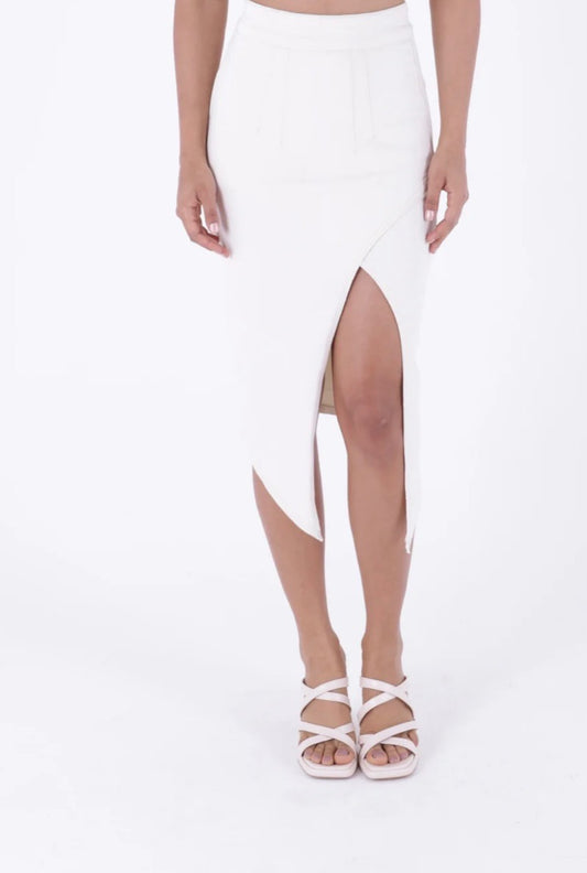 DENIM SKIRT WITH FRONT DARTS AND SIDE SLIT MIXED