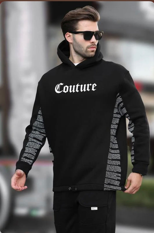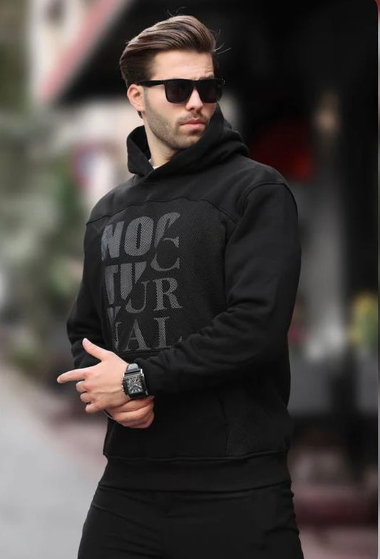 BLACK HOODED PRINTED MEN’S SWEATSHIRT